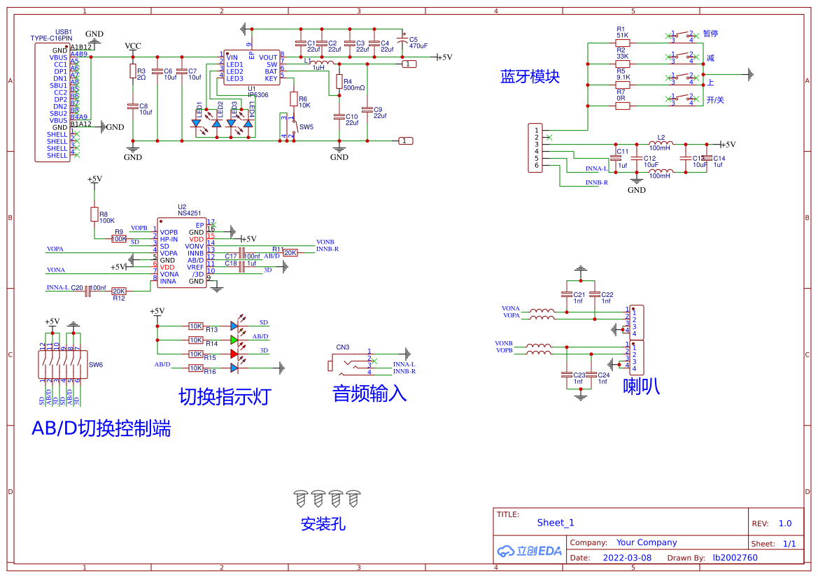 在音频输入和蓝牙输入端加上几个电容过滤干扰 ,让音质更干净。