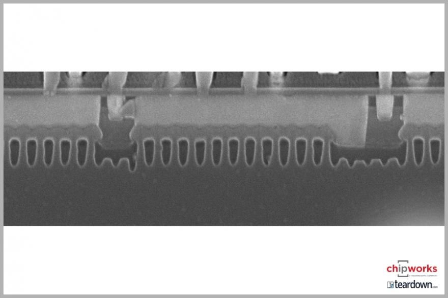 另一个提升性能的因素便是通过封装技术,A10 处理器超级的薄,采用了台积电的 InFO 封装技术,位于 A10 处理器下方的是三星 K3RG1G10CM 2GB LPDDR4 内存,这与 iPhone 6s 上的很相像,通过 X 光线可以看到,四个晶片并不是堆叠在一起的,而是平铺的,这样的布置也大大减小了封装的高度,内存采用封装体叠层技术,配合 A10 InFO 封装技术大大减少了整体的高度。
