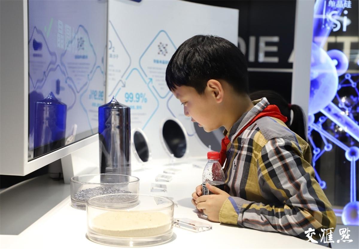 前来参观的儿童被南京集成电路创新馆内的展品所吸引