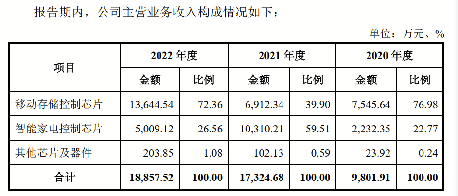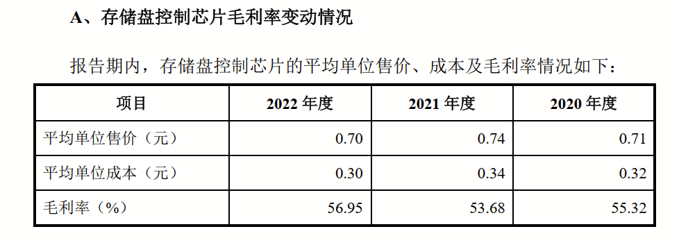 具体看,2020年,存储控制芯片售价0.71元/颗,销售收入为7545.64万元。2022年售价0.7元/颗时,销售额翻了一倍,达1.36亿元。