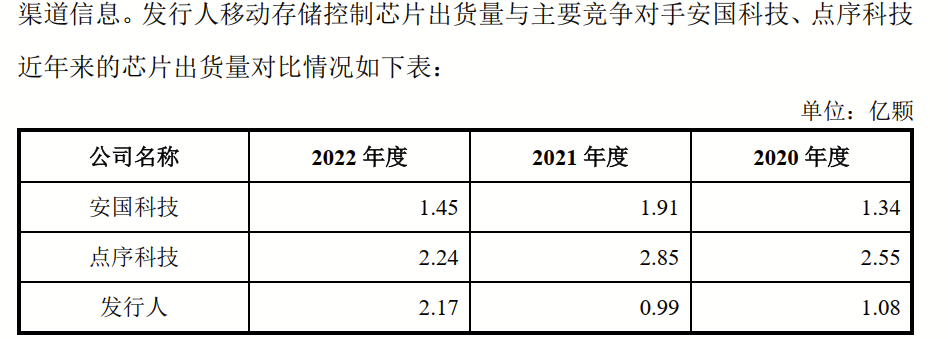 值得一提的是,《招股书》显示,芯邦科技在移动存储控制芯片领域的竞争对手以中国台湾公司为主,其中较为知名的公司包括安国科技、点序科技。以2022年为例,安国科技、点序科技的营收分别约为3.7亿元和4.4亿元。