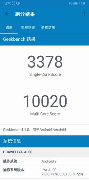 除此之外,麒麟980采用了多核设计,拥有2个超大核(基于Cortex-A76开发)、2个大核(基于Cortex-A76开发)、4小核(基于Cortex-A55开发)。我们专门使用GeekBench测试软件针对其单核和多核性能进行了具体测试。