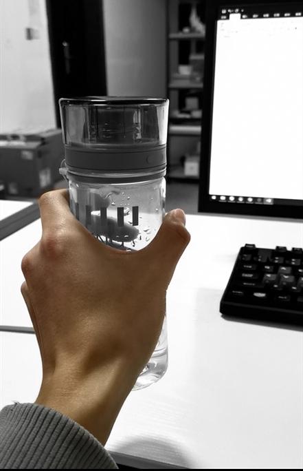 我们又特意把杯子握在手中进行测试,相机可以准确的识别出物体和人体,并给人体保留颜色,即使是细节也都处理的很好。