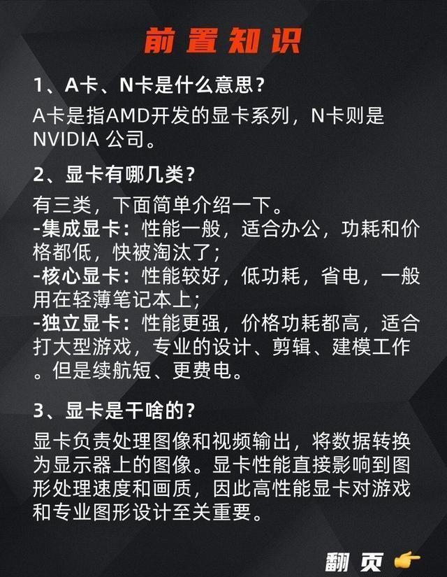 电脑显卡是通过显卡的芯片组区分是A卡还是N卡的。1.A(AMD)卡是使用的ATI的显卡内芯是AMD的显卡,N(NVIDIA)卡指NVIDIA的显卡。2.N卡作品有GeForceTi系列...