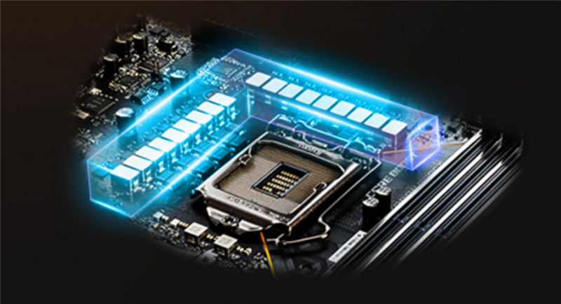 更大的进步是温度,前代的Z390 ACE主板供电电路采用的是安森美上下桥MOSFET,最大导通电流只有45W。MEG Z490 ACE则是用了顶级的90A Intersild ISL99390B DrMOS,不仅能够给处理器输出更大的功率,由于导通阻值更小,温度也更低。