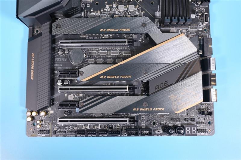 另外还有2个M.2 2280以及一个M.2 22110接口,每个接口都覆盖有MSI冰霜铠甲。