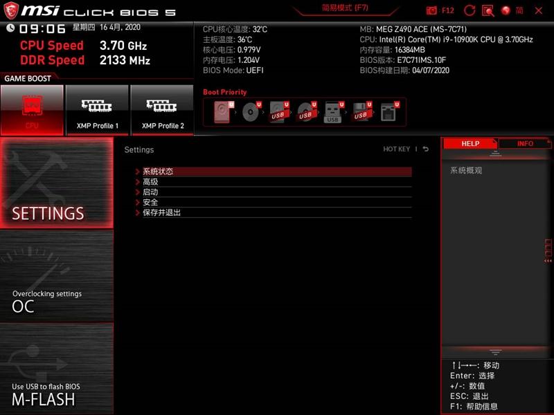 微星传统的Click BIOS 5图形化UEFI 。BIOS主界面包含CPU、内存的频率和电压, CPU以及主板温度等信息。