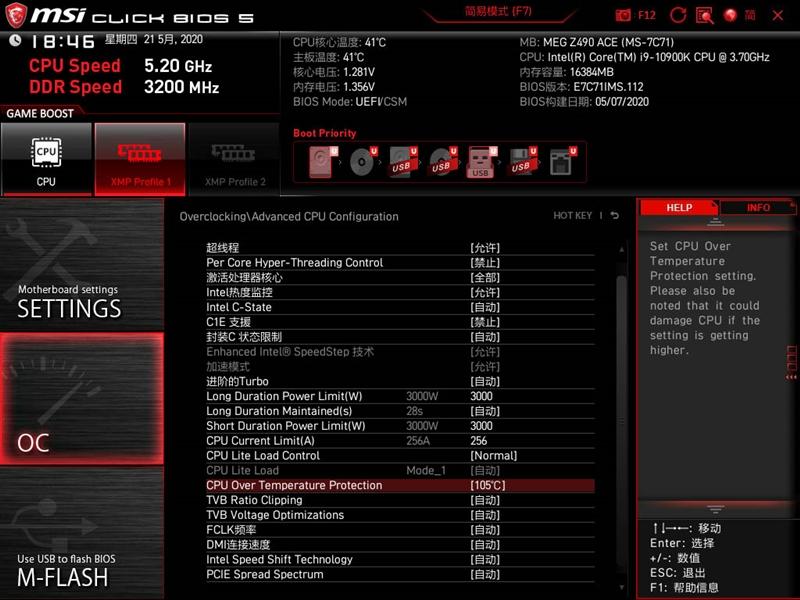 我们我测试过上一代的MEG Z390 ACE主板,它在使用i9-9900K进行烤机测试时,供电模块的温度达到了91度,从这一点来说,MEG Z490 ACE主板的提升的确是不小。