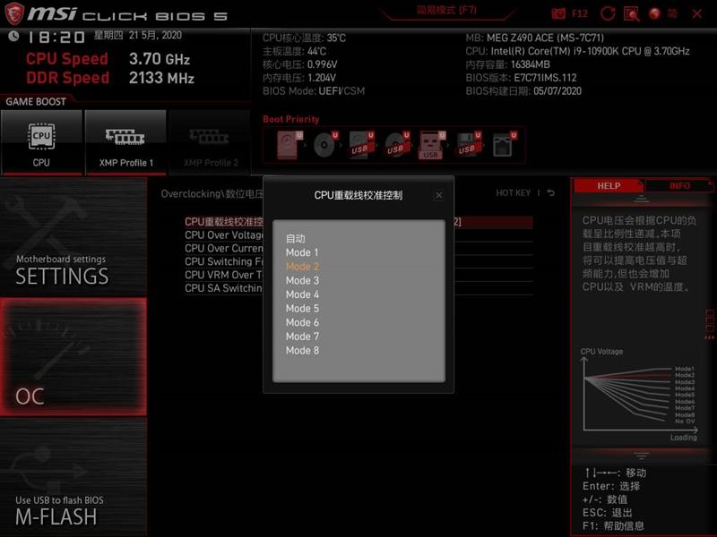 防掉压设置,实测Mode 2就能提供稳定的超频电压。
