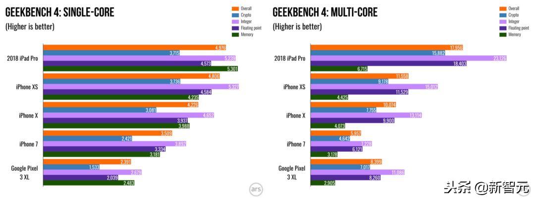 单核/多核,2018iPad Pro与iPhone及谷歌Pixel比较