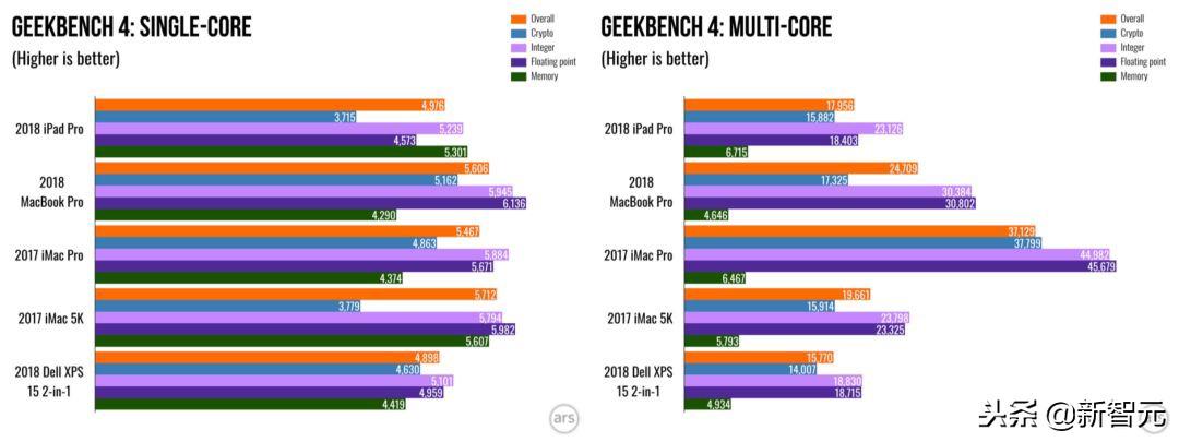 单核/多核,2018iPad Pro与MacBook Pro及三星Dell XPS比较