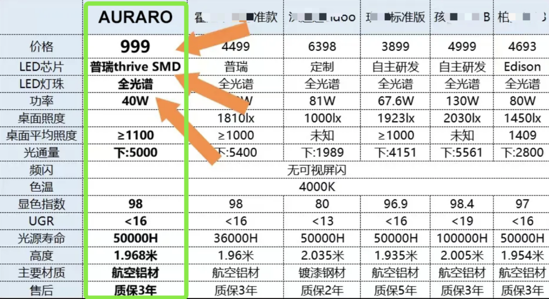 如果你按照上面的几个参数去选大路灯,那么在某宝上会发现小几百块的“大路灯”可能根本不符合,是无法达到护眼功能的“伪产品”。 能满足的大路灯,价格都是几千块,进口品牌的还能贵到一万多块…… 但是考虑到想为大家尽量挑选性价比更高的大路灯产品,我们决定去掉一些品牌溢价,从源头开始把控价格,终于谈到了好品牌——Auraro全光谱大路灯。 这款大路灯就是前文我们实拍实测的那一款,视觉效果大家都能看到,而且有检验报告的 ,品质是真不错!今天优惠价,只要999元 ,而且品牌方提供三年质保 ,让大家买得省钱,用得更放心!上下滑动查看更多