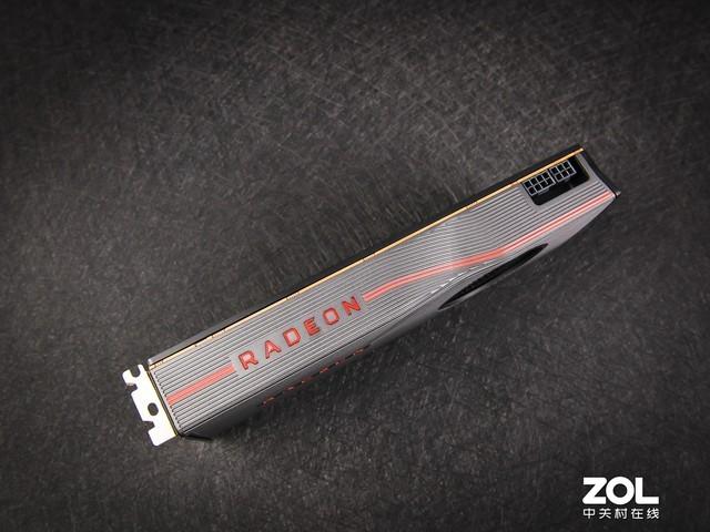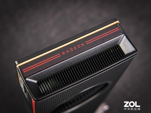 显卡正面采用全金属包裹极简风格,正面只有风扇和RADEON的标志,再无其他。细节之处AMD也为风扇进行了金属包边处理,好评。