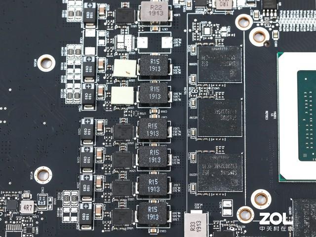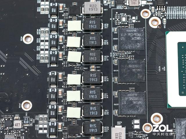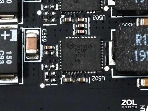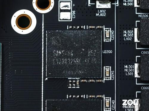 从显卡正面我们也可以看出,三风扇采用了一样的大小,经过测量直径均为9cm。背面还是挺有风格的,在电路板GPU芯片和索泰PowerBoost芯片的位置采用了镂空设计。...