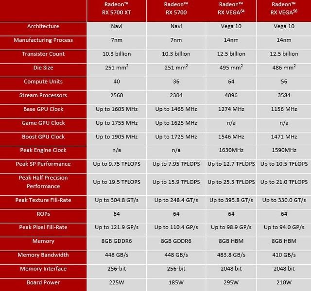 根据AMD的说法,Navi的40 CU设计性能比Vega64提高了约14%,功耗降低了23%。并且具有小得多的芯片尺寸。(Navi 10的面积为251平方毫米,作为对比Vega 64上面的那颗为495平方毫米。)