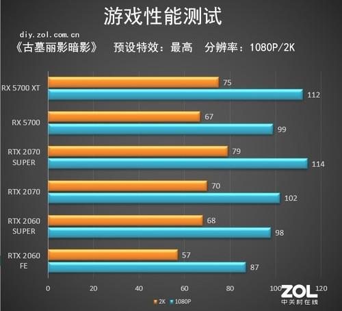 而在DX12环境中,RX 5700领先了RTX 2060,RX 5700 XT稍落后于RTX 2070。在这里我们发现好像二者对位产品已经相当明朗了,结合价位来看,RX 5700对位RTX 2060;而RX 5700 XT对位RTX 2060S和RTX 2070。那么实际游戏性能究竟如何呢?我们接着看。