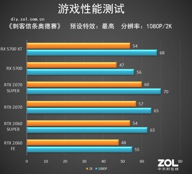 那么体现在游戏中,两款显卡的表现如何呢?为此我们选择了DX11模式下的《孤岛惊魂5》、DX12模式下的《古墓丽影暗影》和对硬件要求非常高的《刺客信条奥德赛》作对比。游戏中我们使用1080P/2K 两种分辨率,画质均为预设最高,使用游戏自带BenchMark记录平均帧数,表现如下: