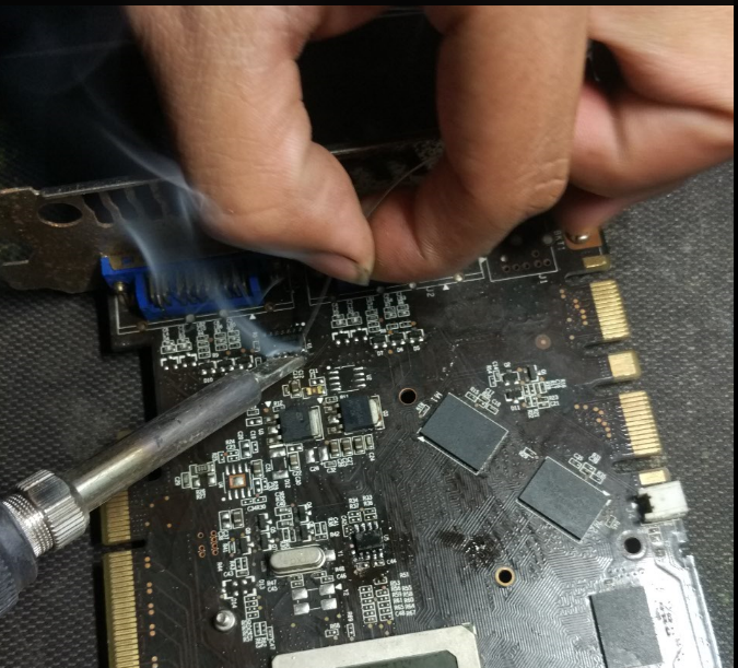 ·这样就在持续的给铜线转了圈的加温,这样保证所有的银角能够同时的融化,就可以把芯片取下来了。