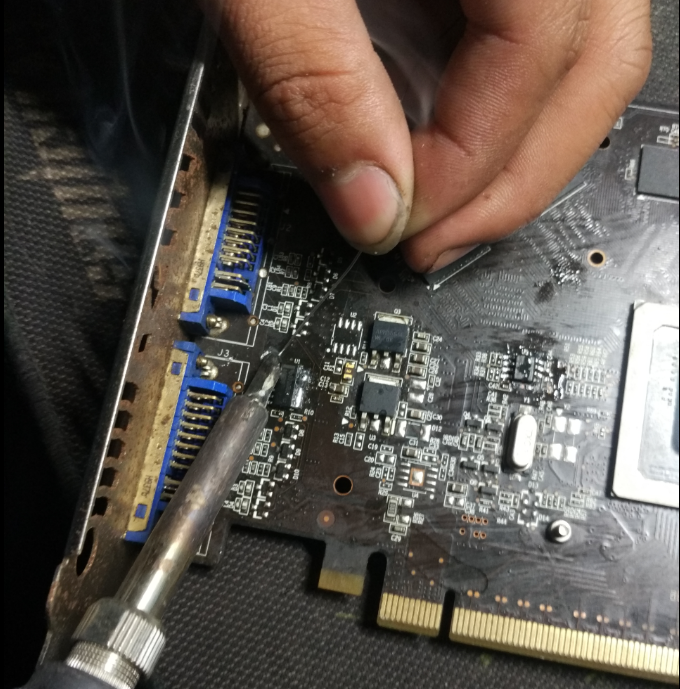 ·接下来给芯片的四边的银角烫上大量的焊锡。