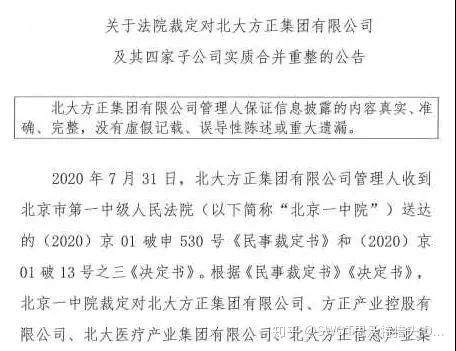 总资产高达3600亿的同时,债务也高达3030亿元。结果在2020年,没有任何预兆的情况下,仅仅因为一笔20亿元的债款,方正就无力运营,申请破产重组。