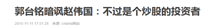 对比,郭台铭都没好气地说:“赵伟国就是一个炒股的。”