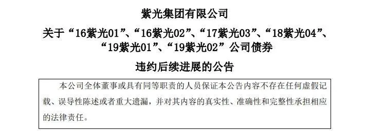 在紫光集团6月30日的债务违约公告上,就曾显示有6只债券违约。