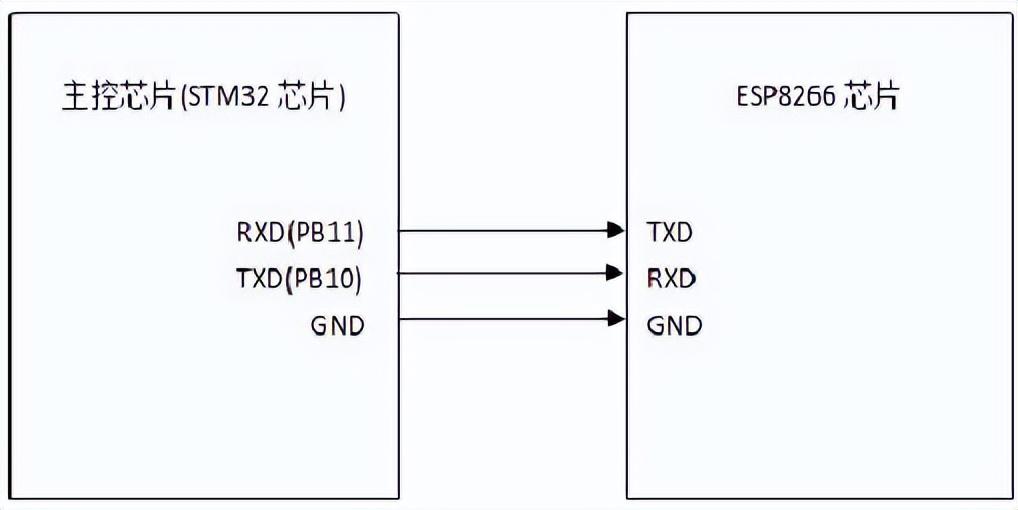随后将ESP8266的RXD、TXD分别跟主控芯片的TXD(PB10)和RXD(PB11)相连,就可以通过串口进行通讯。