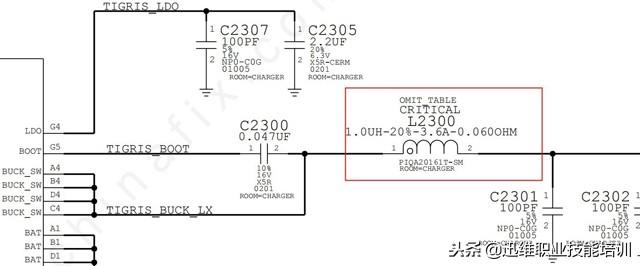 4.电感。 电感旁边会标注大小。如图:电感L2300为1.0UH。