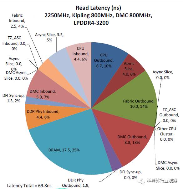 作为CPU,集成到SoC中的时候,一个重要的参数是访存延迟。有个数据,在A73上,每减少5ns的访存时间,SPECINT2K分数就可以提高1%。总的延迟如下: