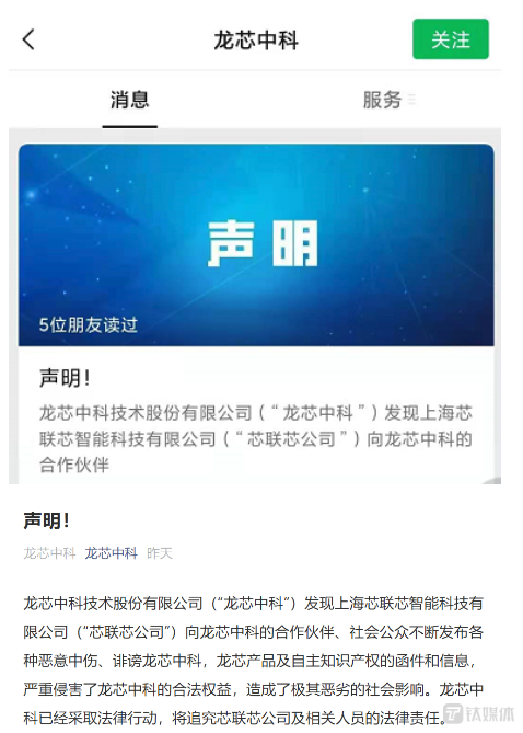 最新的6月17日,芯联芯在其官网发文称,因龙芯中科违约并逃避履行责任,芯联芯已在香港国际仲裁中心和北京知识产权法院针对龙芯中科分别提起了仲裁和诉讼,依据香港国际仲裁中心的临时命令,龙芯中科现已经向香港仲裁中心提交了数千万元的权利金,该案正等待最终裁决。