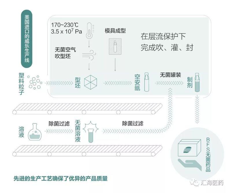 塑料安瓿来源于于吹制-灌装-密封三合一技术(Blow-Fill-Seal,简称BFS)。BFS技术因吹制、灌装、密封三种操作均在的同一工位完成,配合无菌生产条件,极大地降低了产品的微生物污染,提高了无菌保证水平。[3]