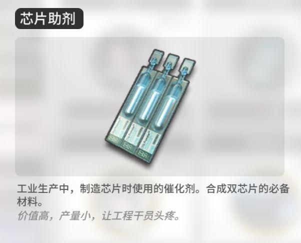 作为《明日方舟》中使用频率最多的材料之一,芯片助剂一直是博士们都感觉到非常头疼的东西,被官方描述为产量小,价值高,让干员头疼的材料: