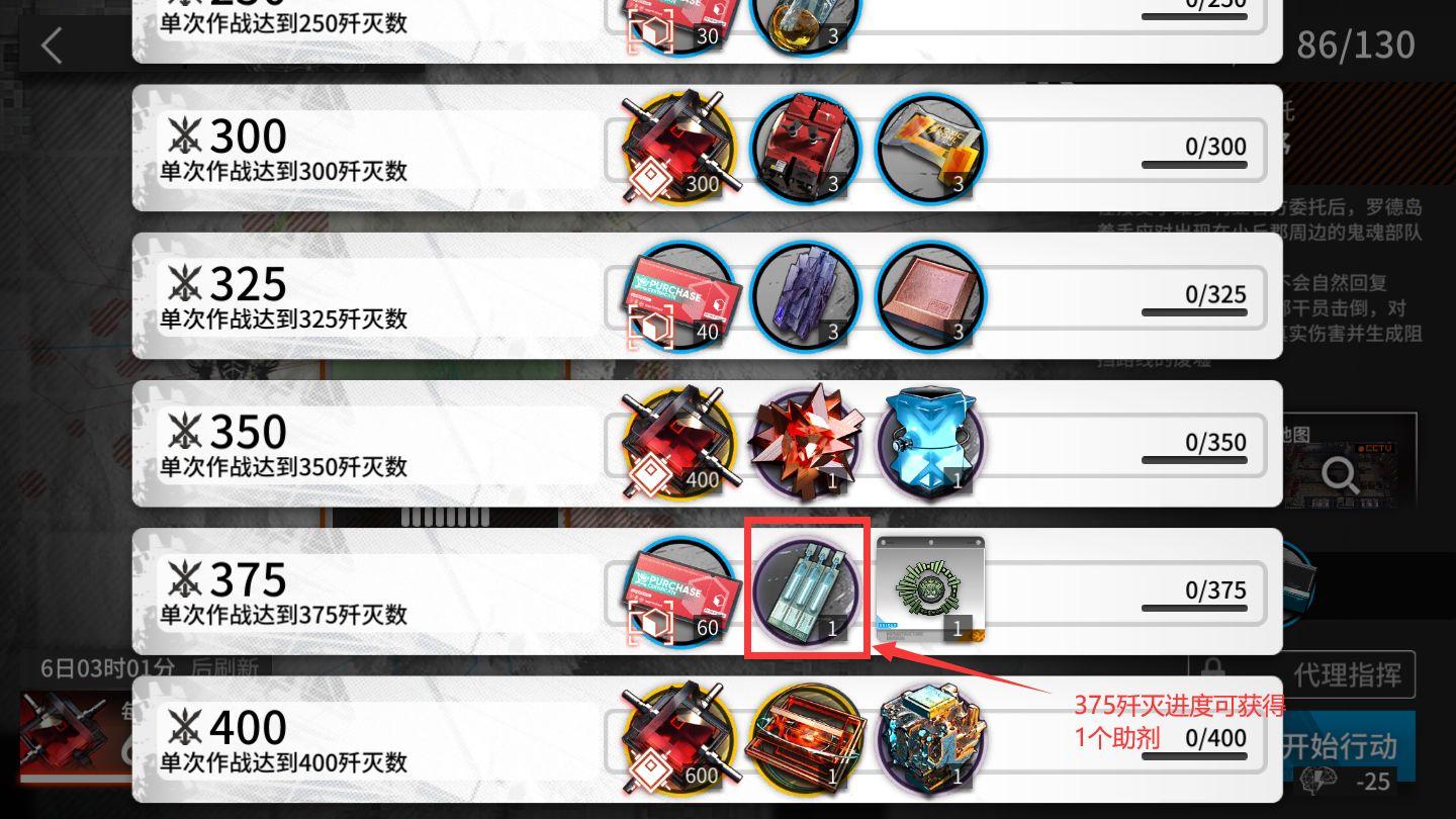 这个渠道的获得显得有点微不足道了,每隔大概一段时间,《明日方舟》官方会更新新的剿灭作战副本,而通过剿灭作战副本的375剿灭进度,可以获得一个芯片助剂。虽然说,这个的获得可以对博士而言说是蚊子腿,重要性还不如1800的合成玉,但是可以说这蚊子腿也是肉。