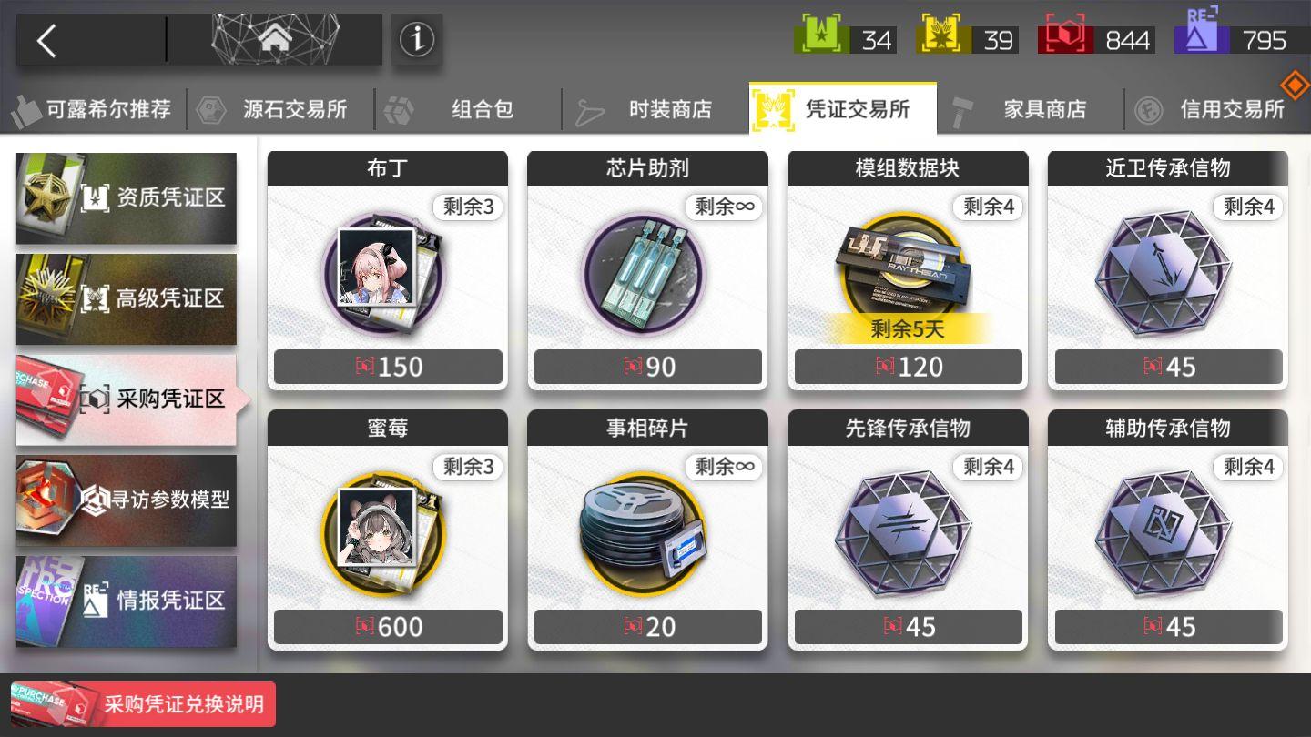 还有一种方式是通过采购凭证(红票)兑换获得,这里可以说是博士们兑换的主要聚集地,虽然说90个红票兑换一个(需要突5次粉碎防御),但胜在可以无限兑换,且不用消耗珍贵的高级凭证。