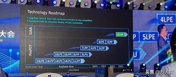 另外,7月6日,2021国产IP与定制芯片生态大会上,三星公开了一份新工艺路线图,图中可以清晰地看到,3nm工艺会在2023年会量产。