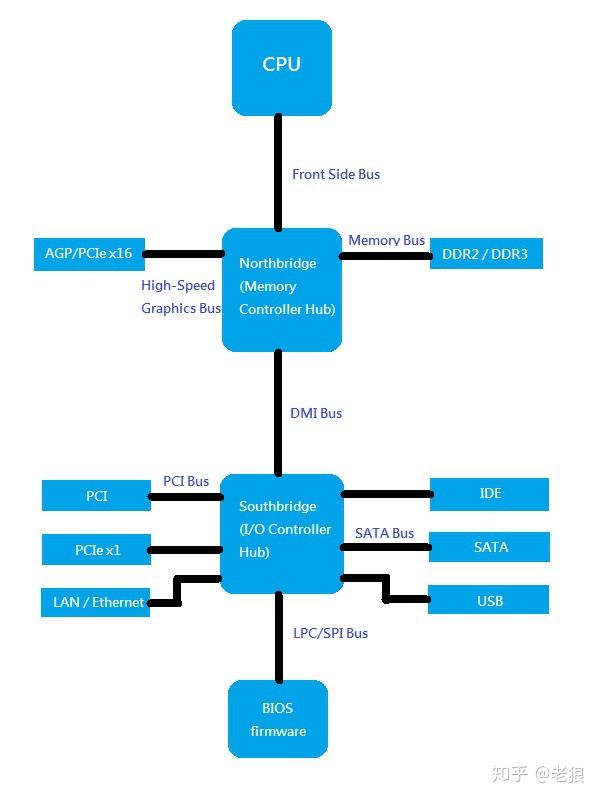 熟悉计算机系统演变历史的小伙伴们都知道。很久很久以前(也没有多久了),计算机主板上有CPU、北桥(MCH)和南桥(ICH)这三个主要的芯片: