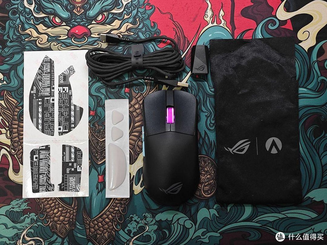 配件上 ROG 附赠有伞绳线、接收器延长器、收纳袋、替换脚贴、防滑贴,非常齐备,防滑贴也算是一定程度上弥补了外壳防滑一般的问题。