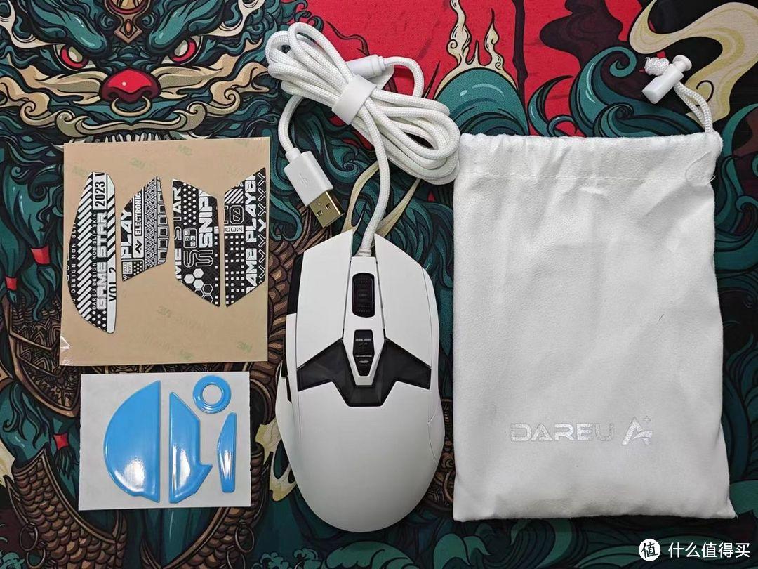 配件上,达尔优给到了收纳袋、替换脚贴、防滑贴,作为有线鼠标的配件基本齐备了。