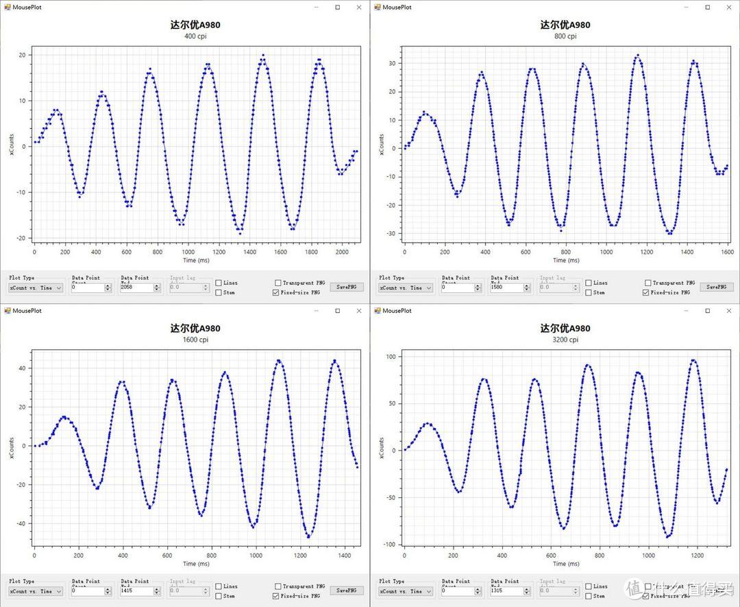 性能上,A980 运动追踪表现优异,不同 DPI 下离散都近乎完美。