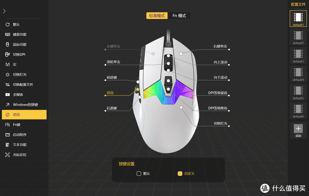 不过 A980 存在一个我比较介意的设计缺陷:拇指位的 G502 同款的狙击键,狙击键一般仅用于 FPS 游戏中狙击枪开镜时切换低 DPI 让准心更稳,其余场景几乎用不上,但使用频率如此之低的狙击键竟位于拇指位这一黄金位置,很容易误触,因此我拿到鼠标后马上在驱动中把狙击键禁用了。