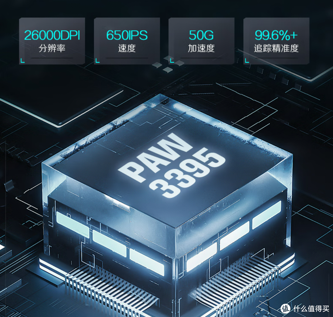 3395 实际为原相 PAW3395 传感器的简称,传感器(sensor)又称为引擎,为鼠标的核心元件,负责对移动信号的捕捉与处理,直接决定鼠标性能的高低。