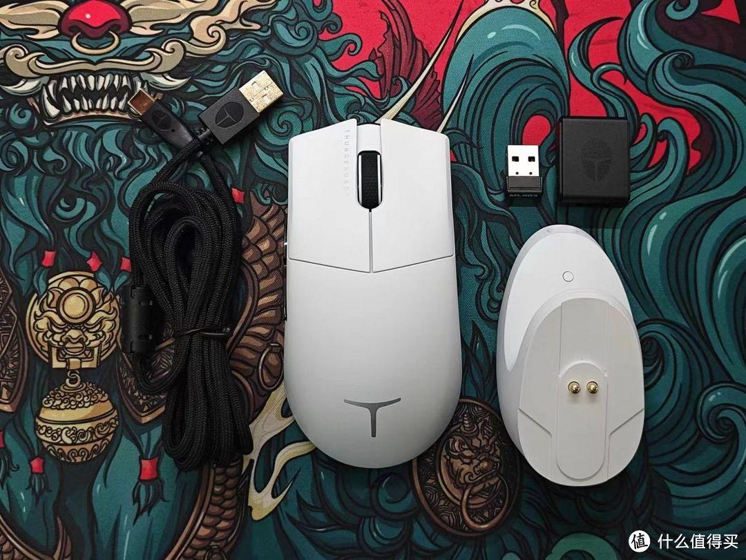 配件上,雷神给到了伞绳线、接收器延长器、无线充电底座,没有替换脚贴,其中无线充电底座还集成了 4KHz 接收器,也就是说 ML903 有两个无线接收器,对多设备玩家非常友好。