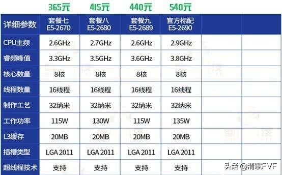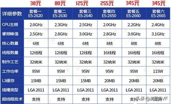 假如你购买二手至强处理器组建平台是用来打游戏或程序多开,建议选择频率比较高些的型号,配置单中挑选了E5-2650V2,更多处理器细节总结在下面表格中。