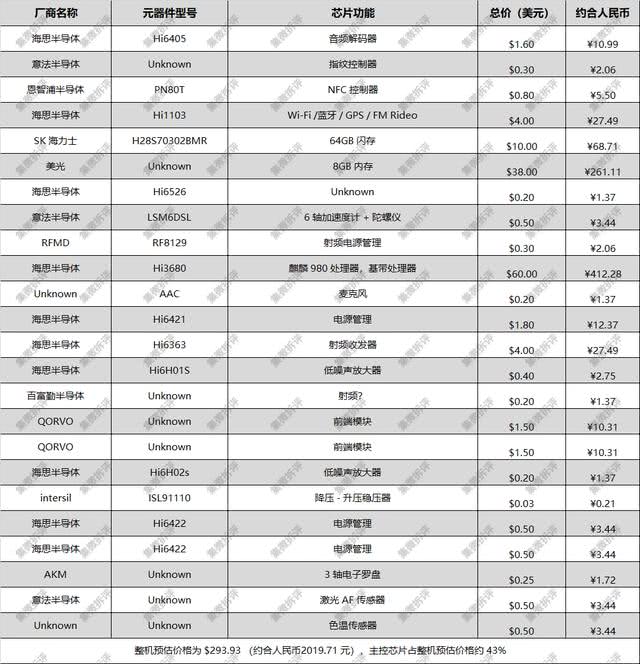 华为P30拆解:主元器件都来自海思,渐趋自主化