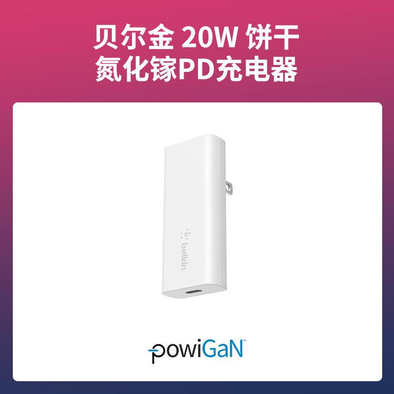 2、贝尔金 20W 饼干氮化镓PD充电器