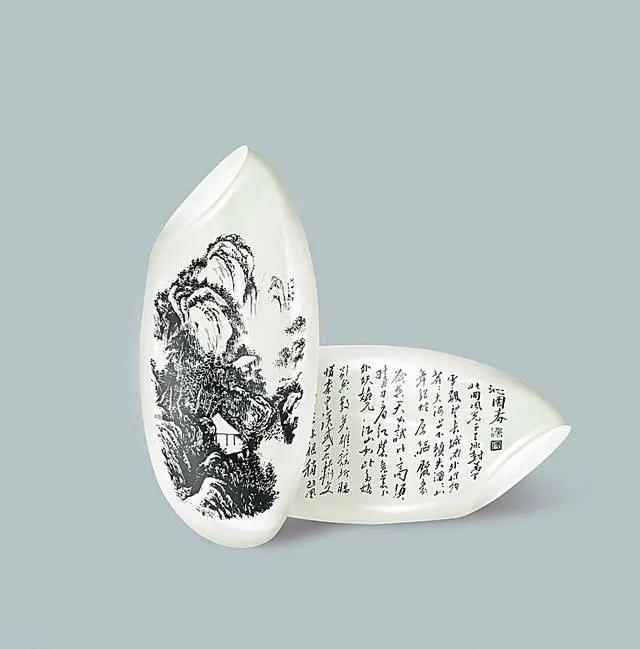 还有更厉害的,民家艺术家可以在一粒米上雕刻出一幅国画,甚至是一首沁园春书法作品。