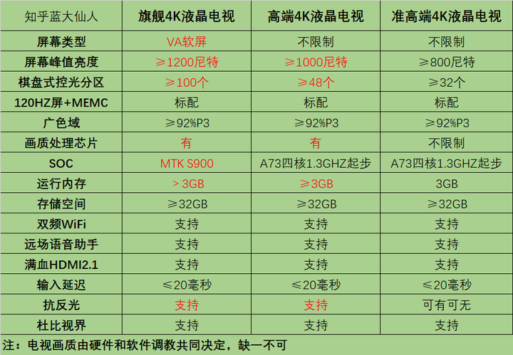 然后真HDR 4K液晶电视还可以细分为三种:准高端/高端/旗舰