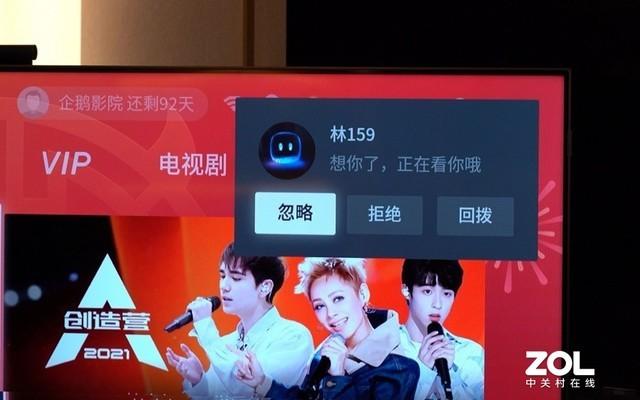 还有一个小细节,当我们在C12观看电视的时候,如果手机收到消息或来电,会在电视的右上角做一个便捷的提示,不错过任何一个消息。