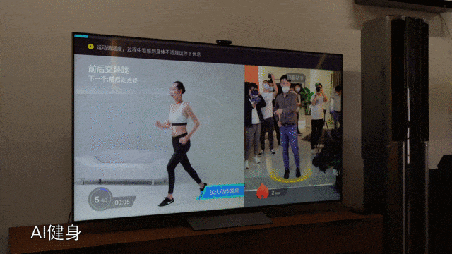 越来越多的年轻人喜欢在家庭里进行健身,C12为此推出了「AI健身」功能,除了提供各种健身专题之外,TCL还专门针对人体骨骼做了工程学方面的研究,通过摄像头检测当前人物的身体状态,来更精准的对健身的姿态进行引导调整。
