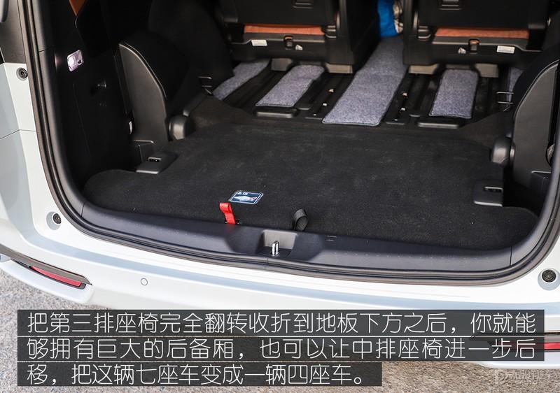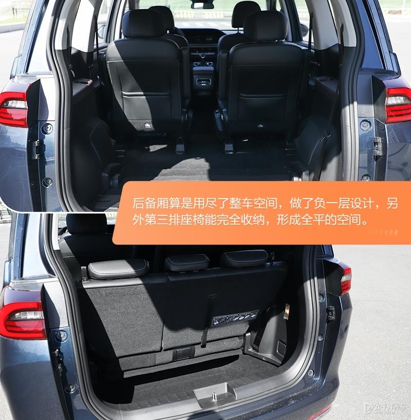 传祺M6 PRO的车身尺寸不算拔尖,但是空间利率可是比较高。加上第三排座椅可以实现魔术变化,翻折到后备箱底部后可“隐藏”起来,不仅做到跟地板纯平,而且横向和纵向空间表现都很出色。